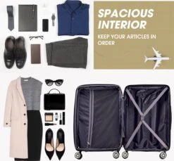 De volledig gevoerde interieurs met scheidingswanden met rits en multifunctionele ruime zakken houden uw kleding en zelfs kleine spullen netjes en opgeruimd, waardoor het gemakkelijk is om uw bagage in te pakken. De multi-directionele gedempte universele wielen maken het transport gemakkelijk en efficiënt. Het ingebouwde dubbele TSA-compatibele combinatieslot zorgt ook voor gemakkelijk en veilig reizen.