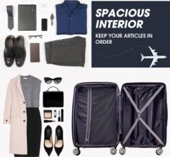 De volledig gevoerde interieurs met scheidingswanden met rits en multifunctionele ruime zakken houden uw kleding en zelfs kleine spullen netjes en opgeruimd, waardoor het gemakkelijk is om uw bagage in te pakken. De multi-directionele gedempte universele wielen maken het transport gemakkelijk en efficiënt. Het ingebouwde dubbele TSA-compatibele combinatieslot zorgt ook voor gemakkelijk en veilig reizen.