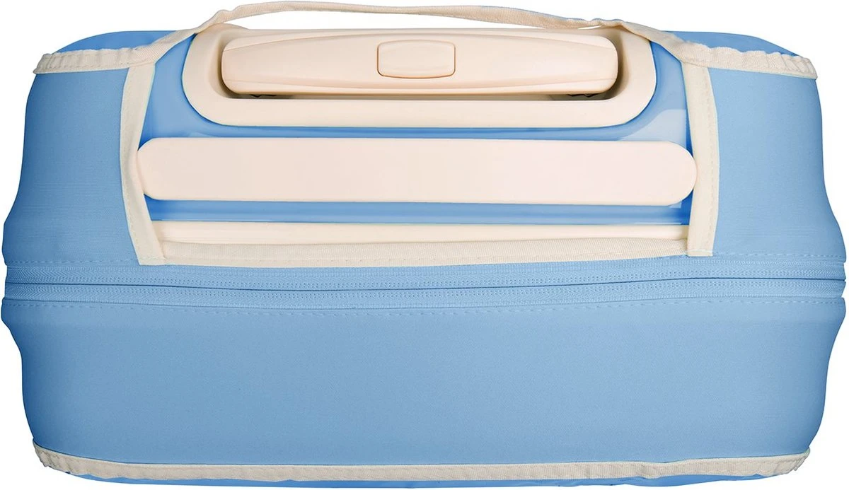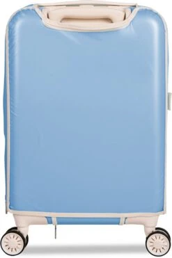 De Fabulous Fifties beschermhoes is dé perfecte oplossing voor het behouden van een schone en krasvrije handbagage koffer. Met de extra beschermlaag houd je je SUITSUIT koffer zo lang mogelijk mooi. De voor- en achterzijde van de hoes zijn mat transparant PVC, zodat de kleur van je Fabulous Fifties koffer goed zichtbaar blijft. De iconic kleur Alaska Blue vind je terug aan de boven- en zijkanten van de beschermhoes.